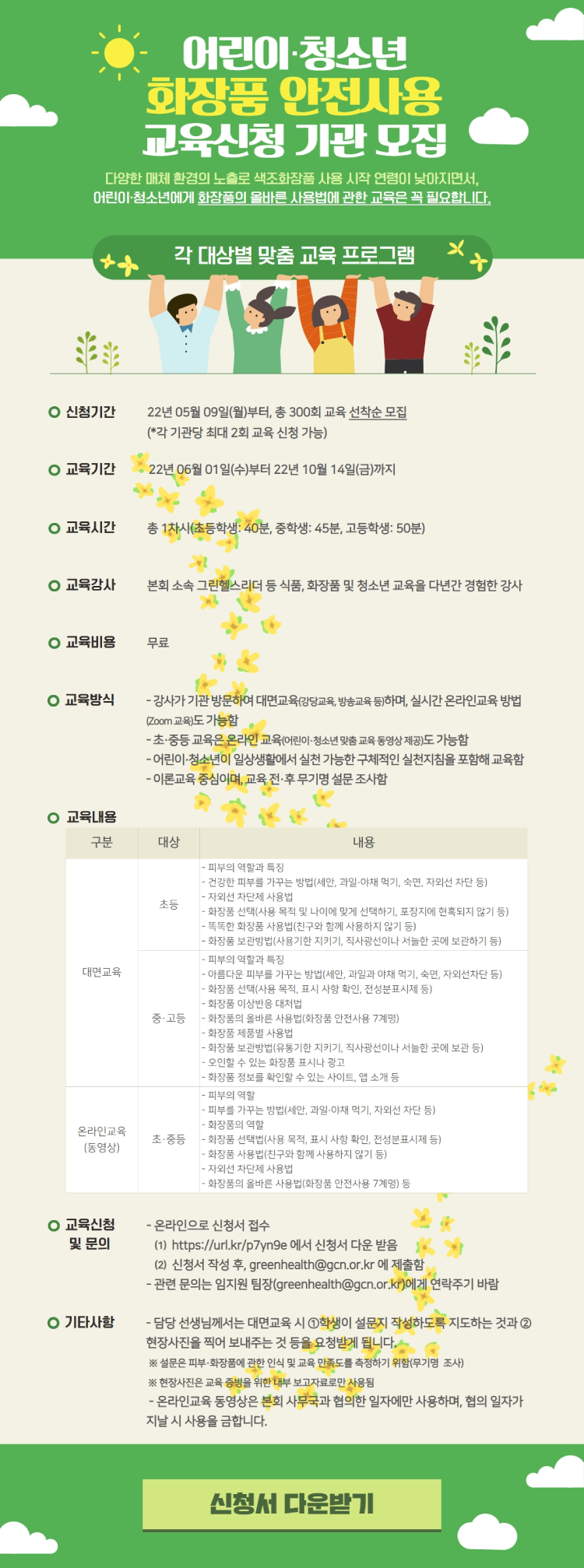어린이,청소년 화장품 안전사용 교육 신청 기관 모집